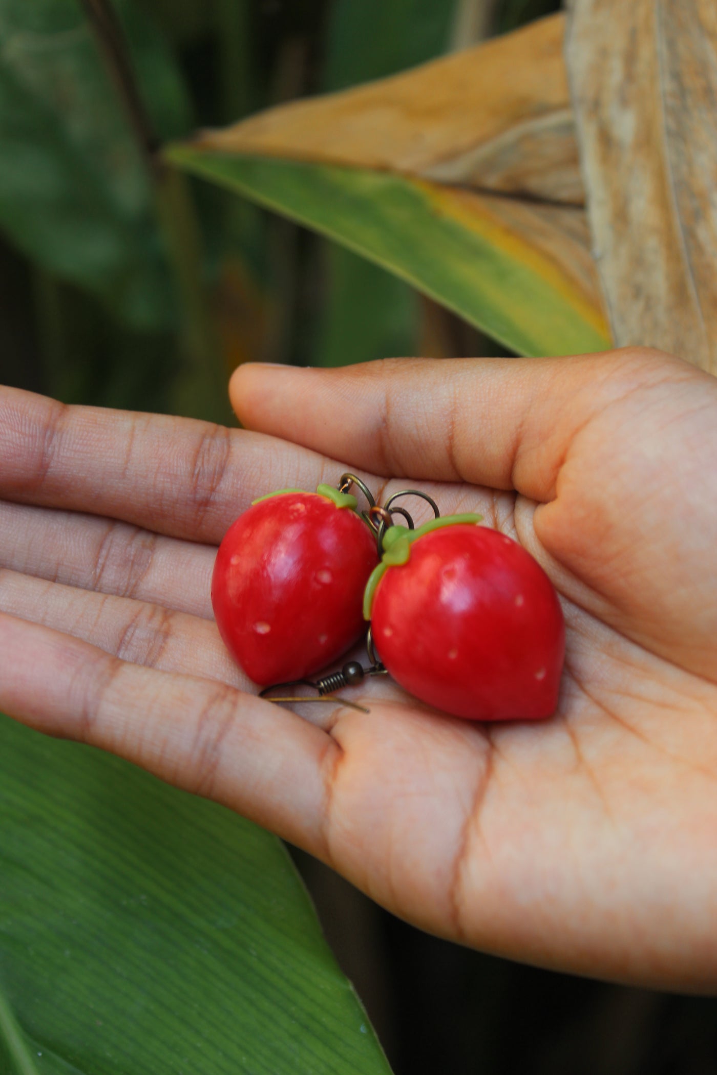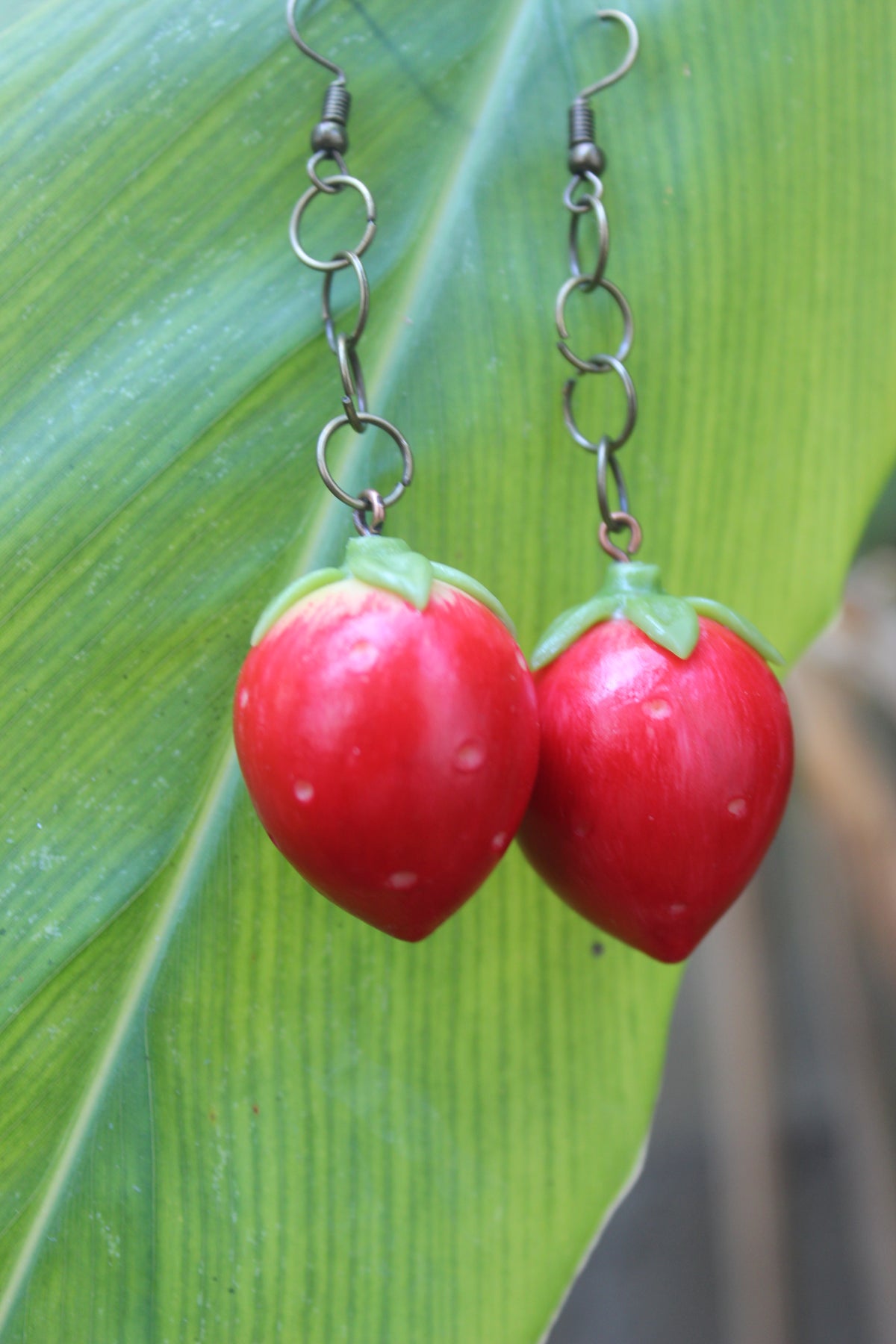 Look what we found growing in our garden! These adorable strawberry earrings bring the perfect touch of sweetness to any outfit. Handmade in Thailand from lightweight polymer clay, they hang about 2 inches on a delicate brass hook.